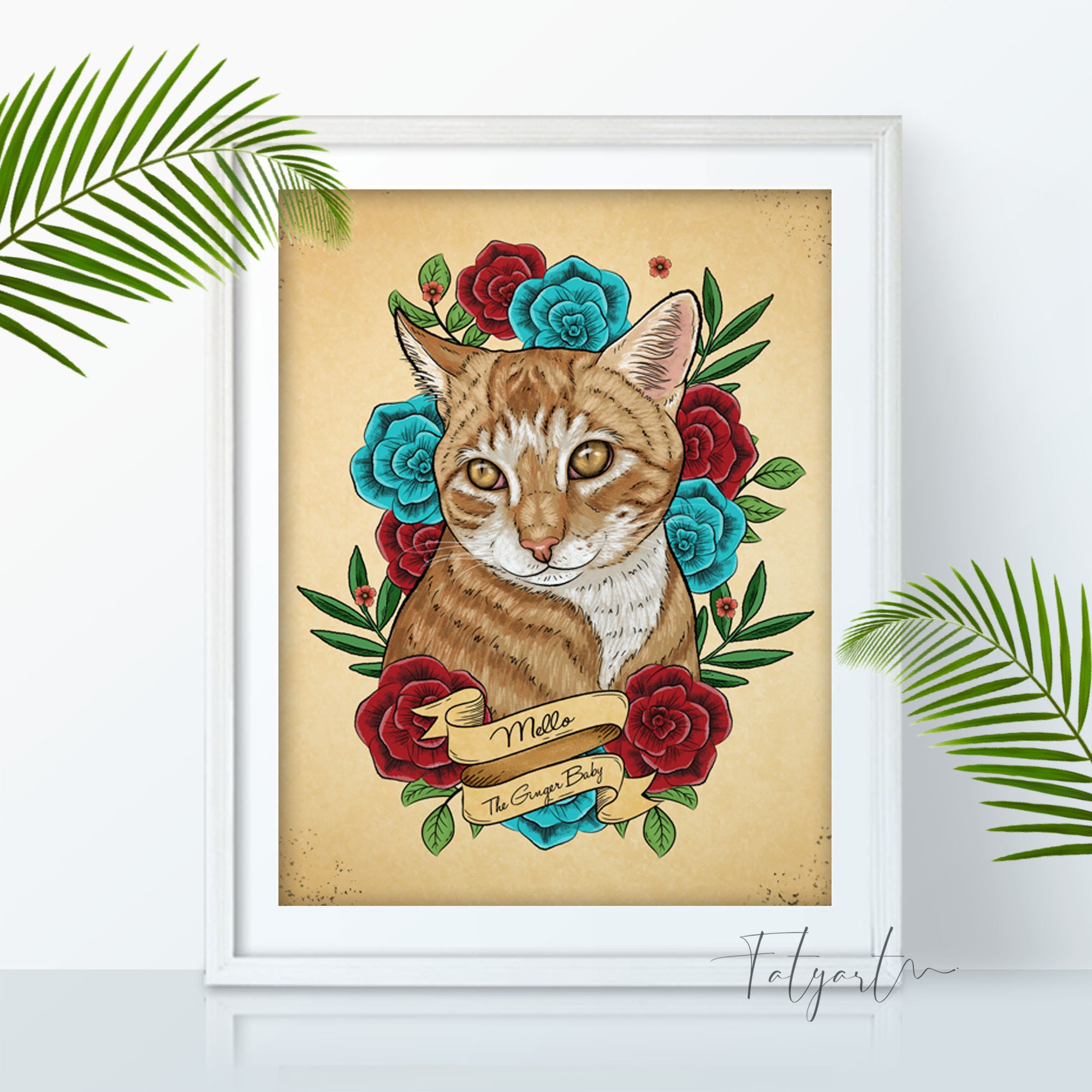 Custom Neo Traditional Tattoo Pet Portrait With Flowers For Etsy Uk